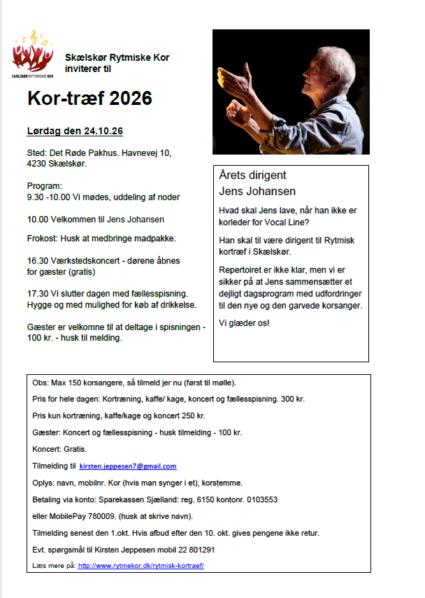 OBS: Max 150 korsangere i alt. Først til mølle. Tilmeld jer nu.